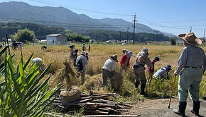 10月3日の稲刈りは、天気も良くかなり暑かったですが、子供たちは鎌や紐の使い方をすぐ覚えて、楽しく刈ってくれました。